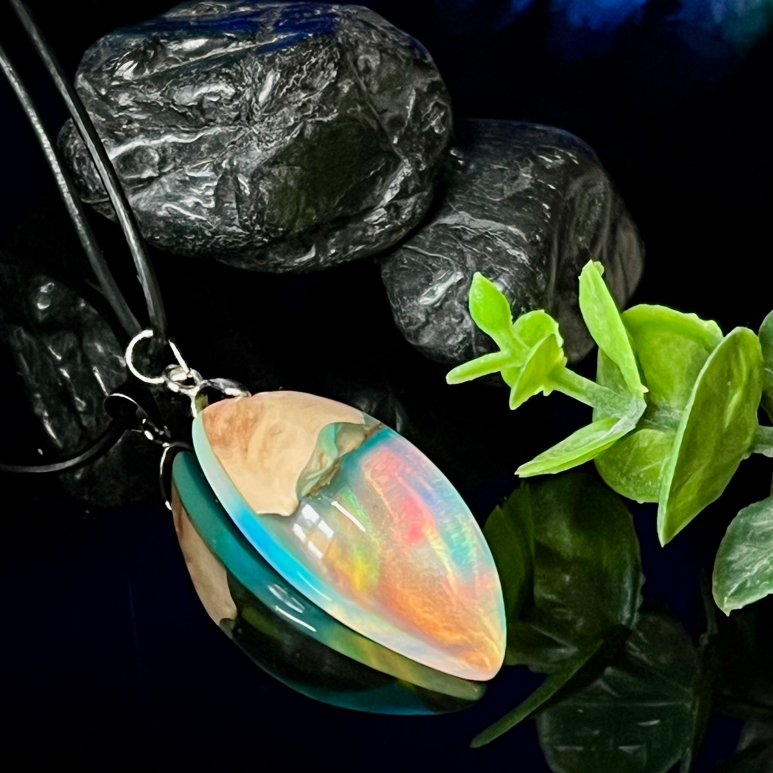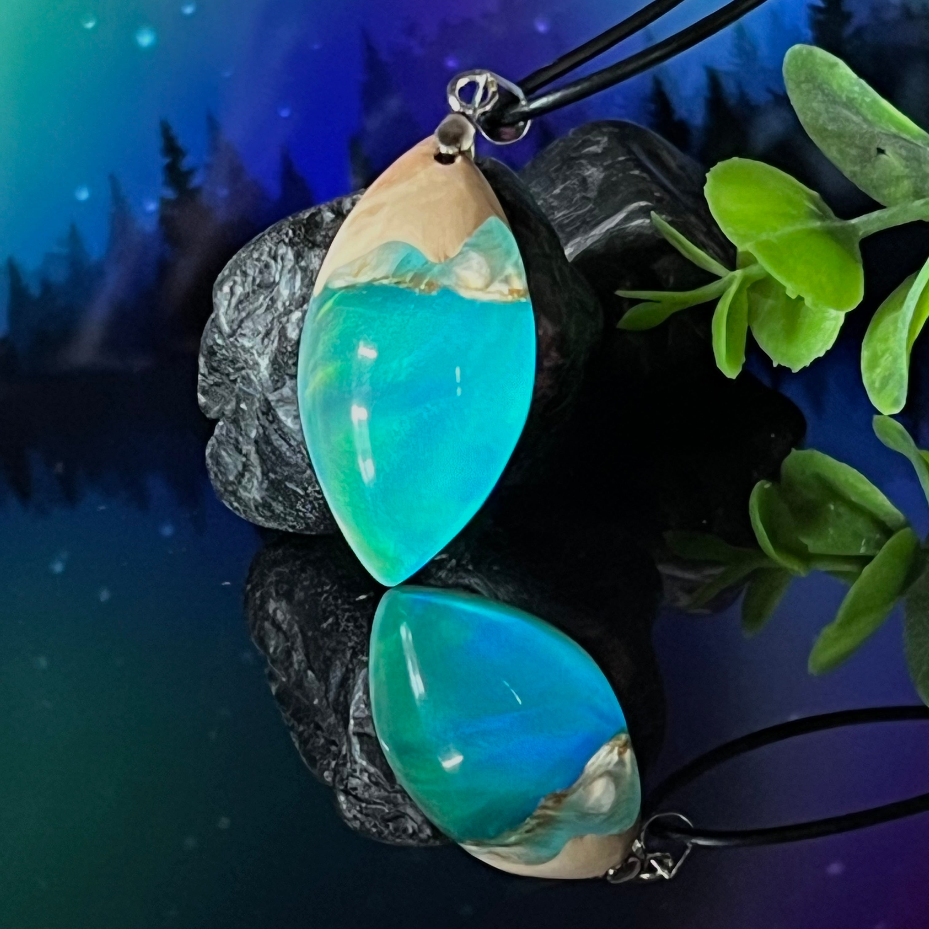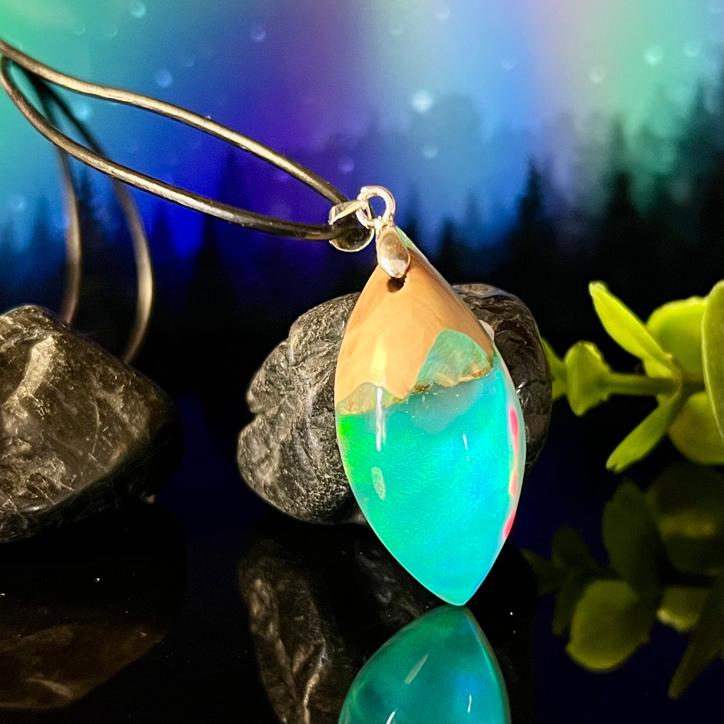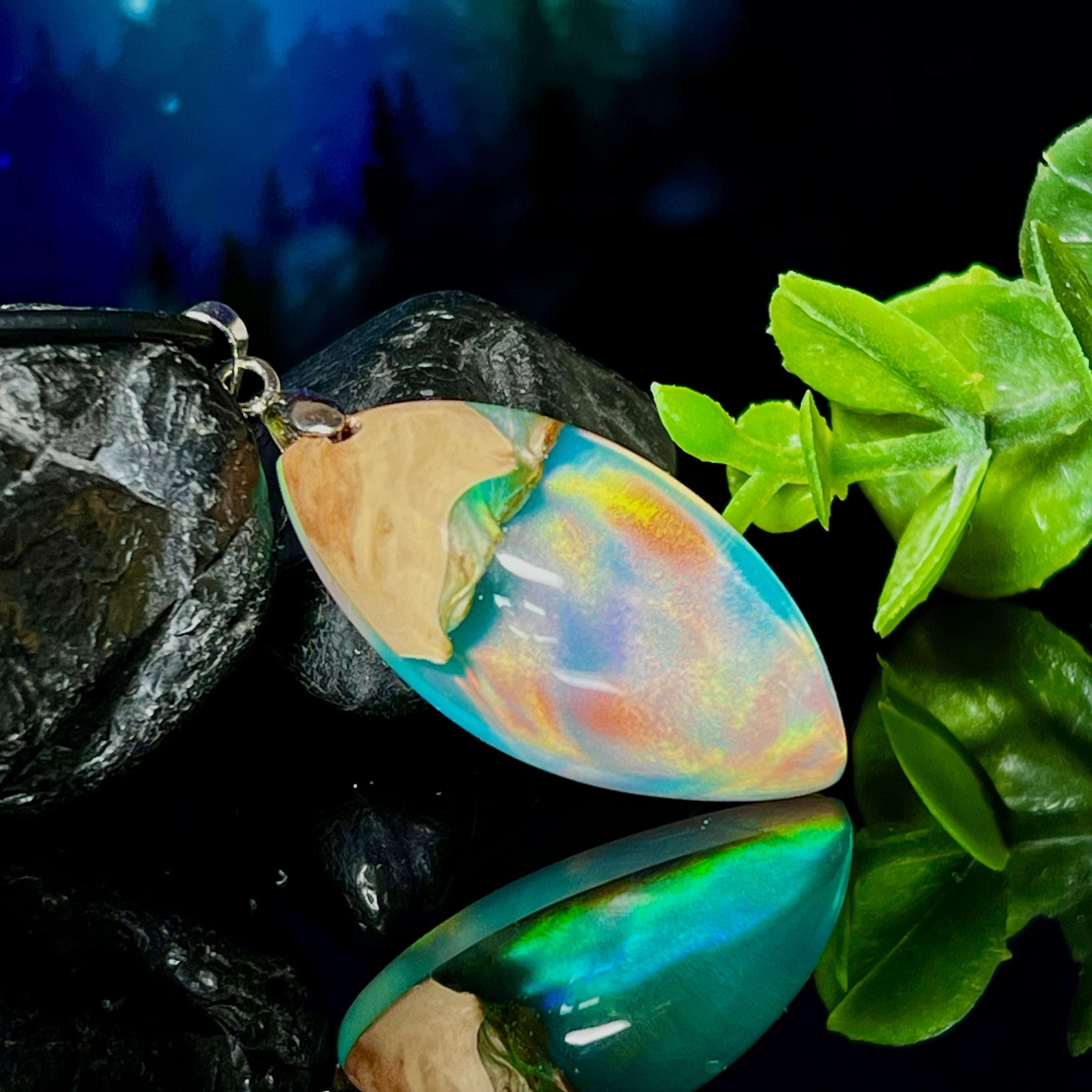 Aurora Drop – Holz-Harz Anhänger mit schimmerndem Farbspiel