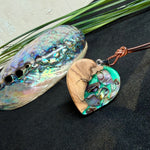 Herzanhänger aus Olivenholz & Paua-Muschel – Aquamarin Harz