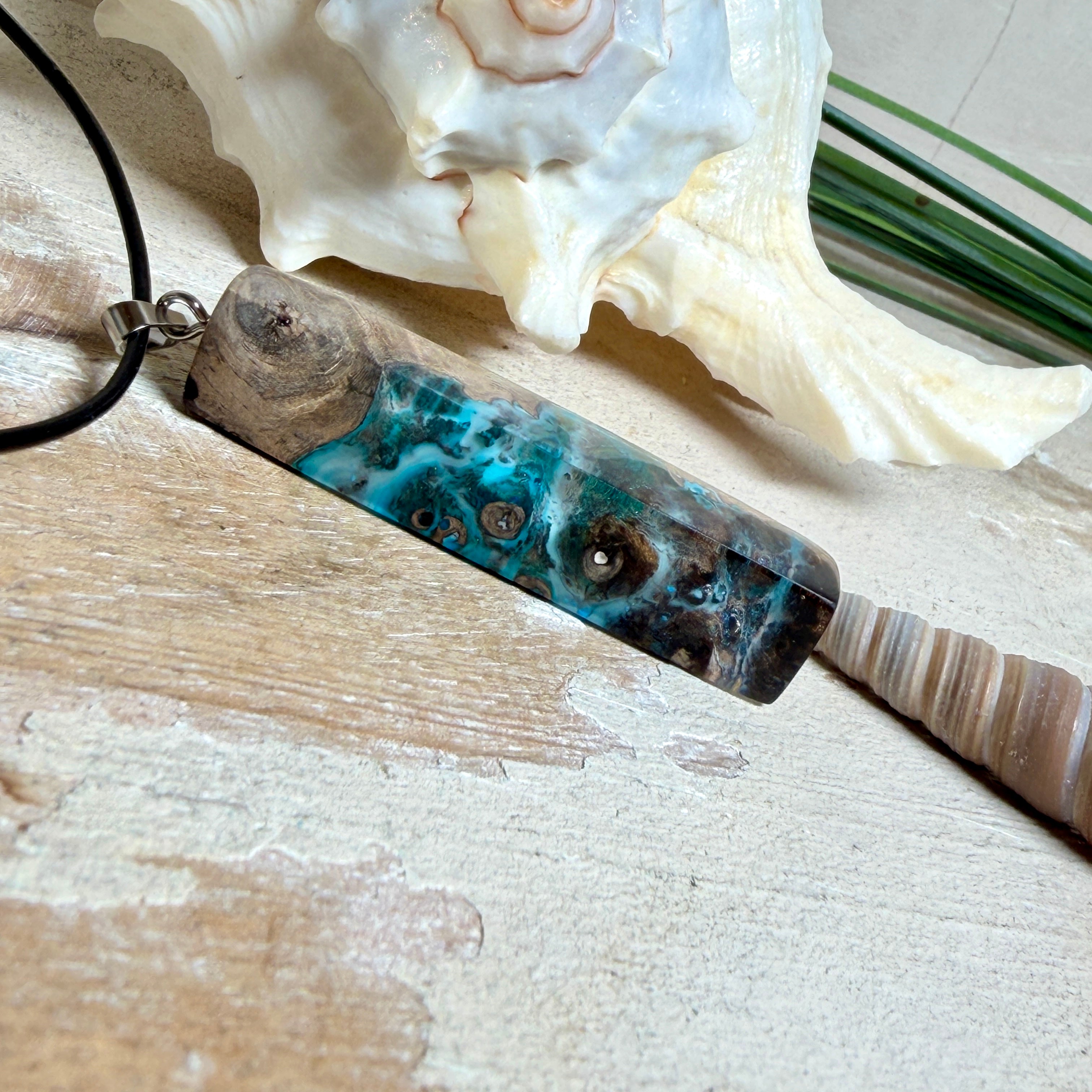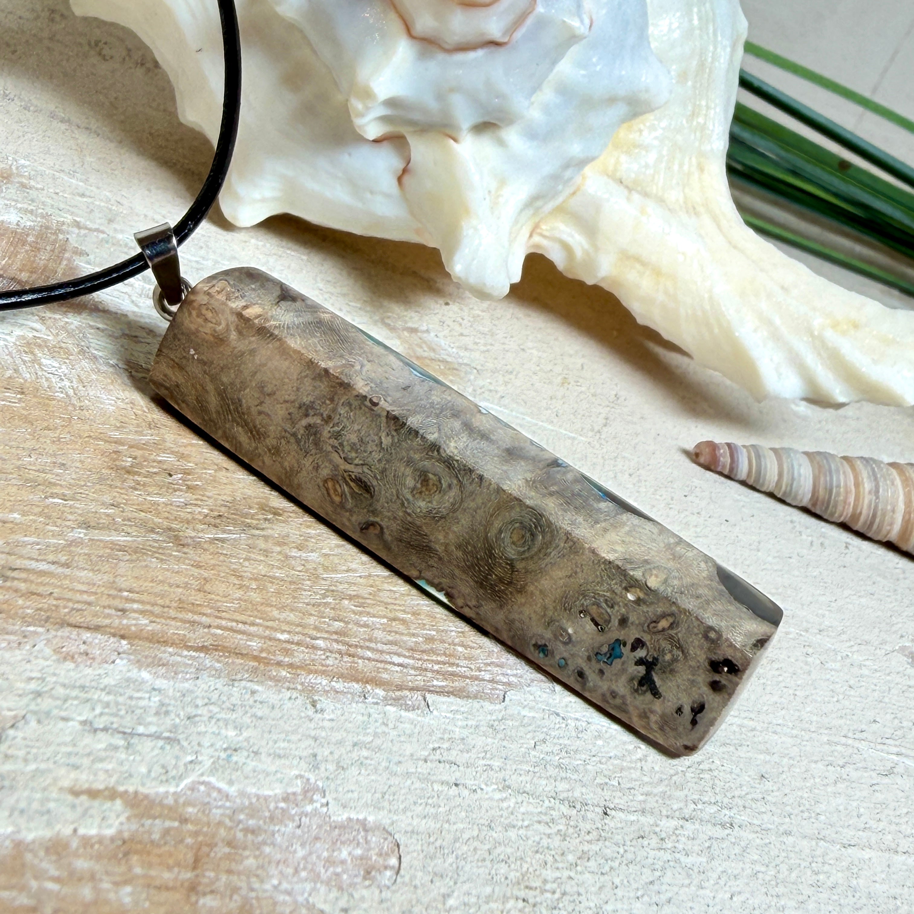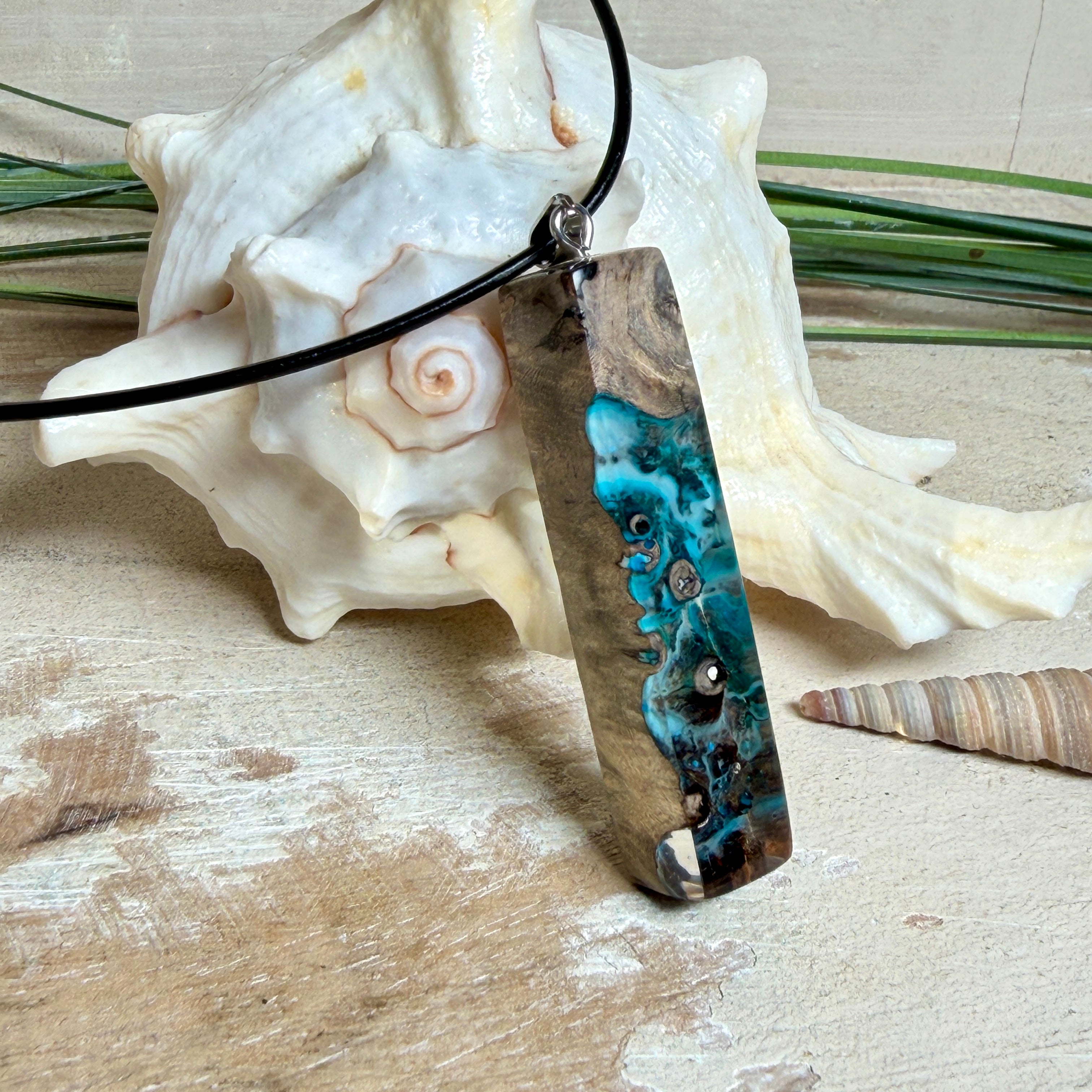 Holz & Harz Anhänger aus Maserholz ,Tiefsee-Lagune, Unisex