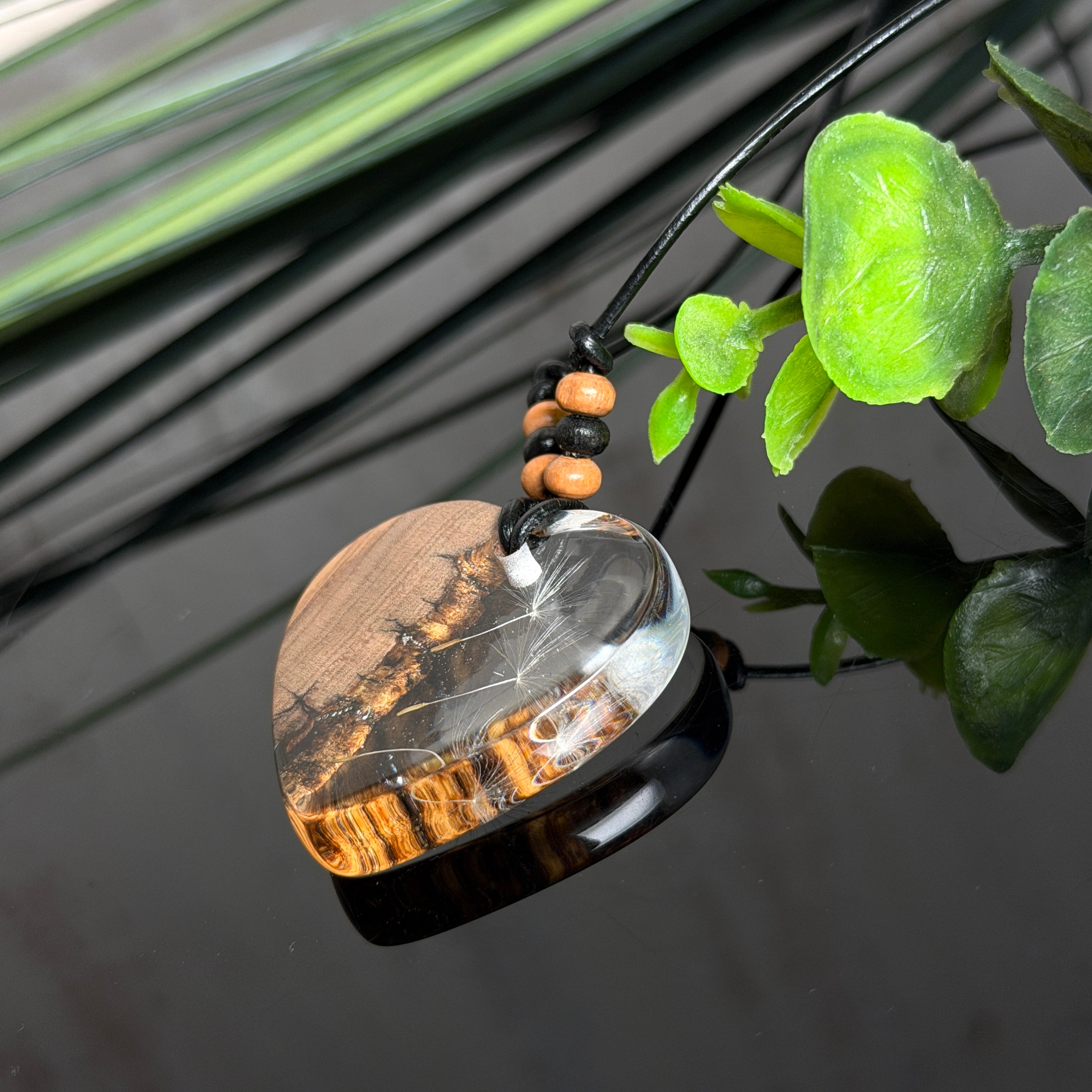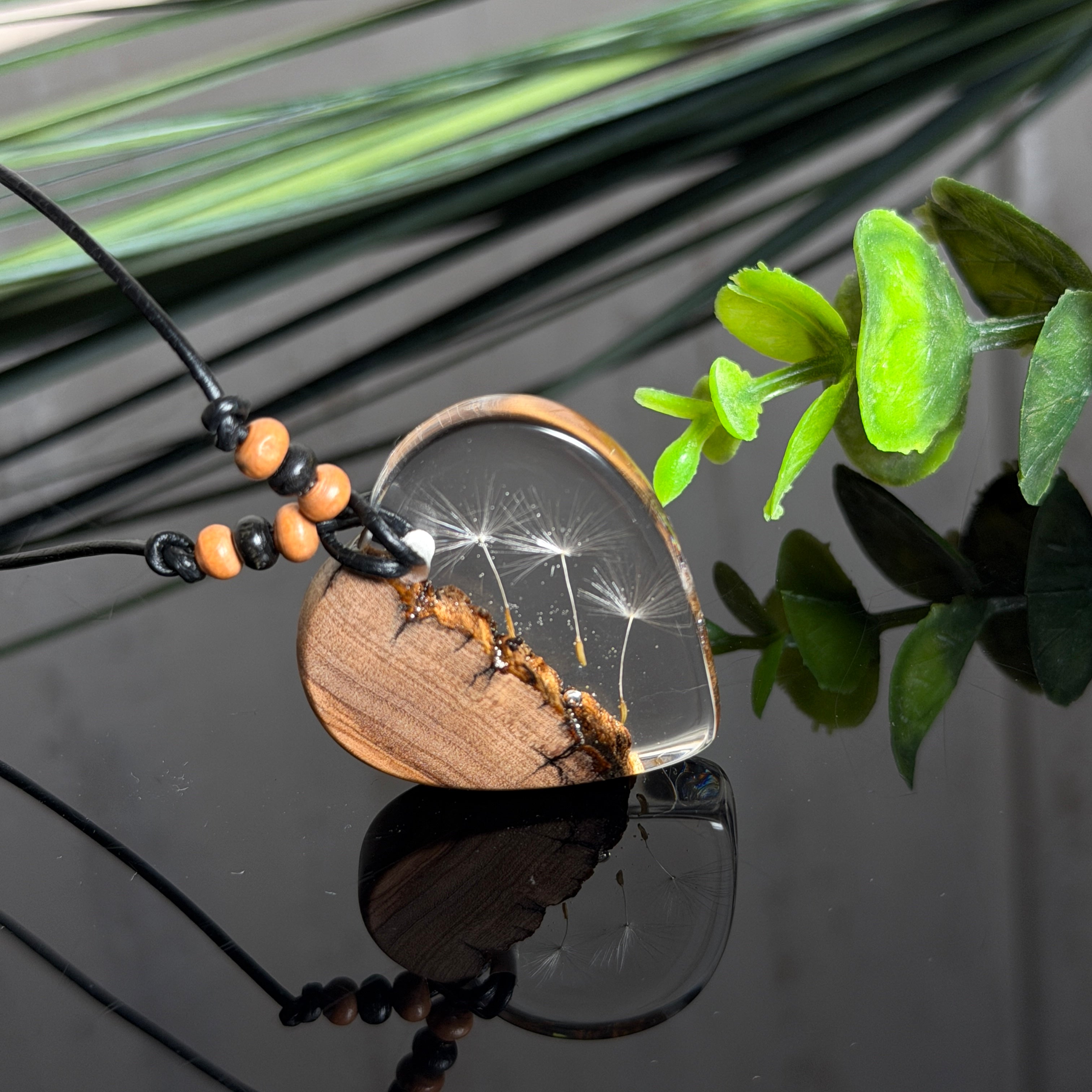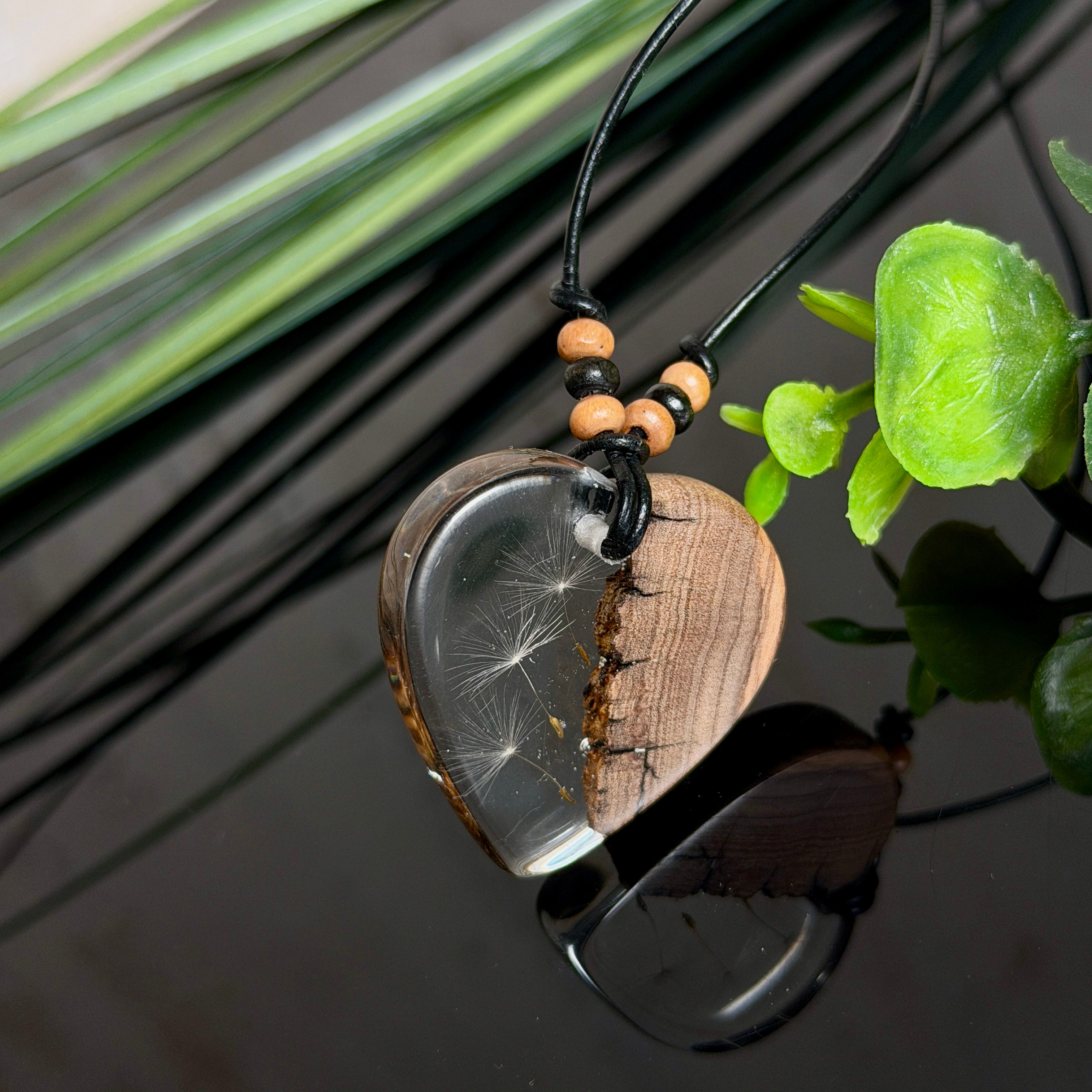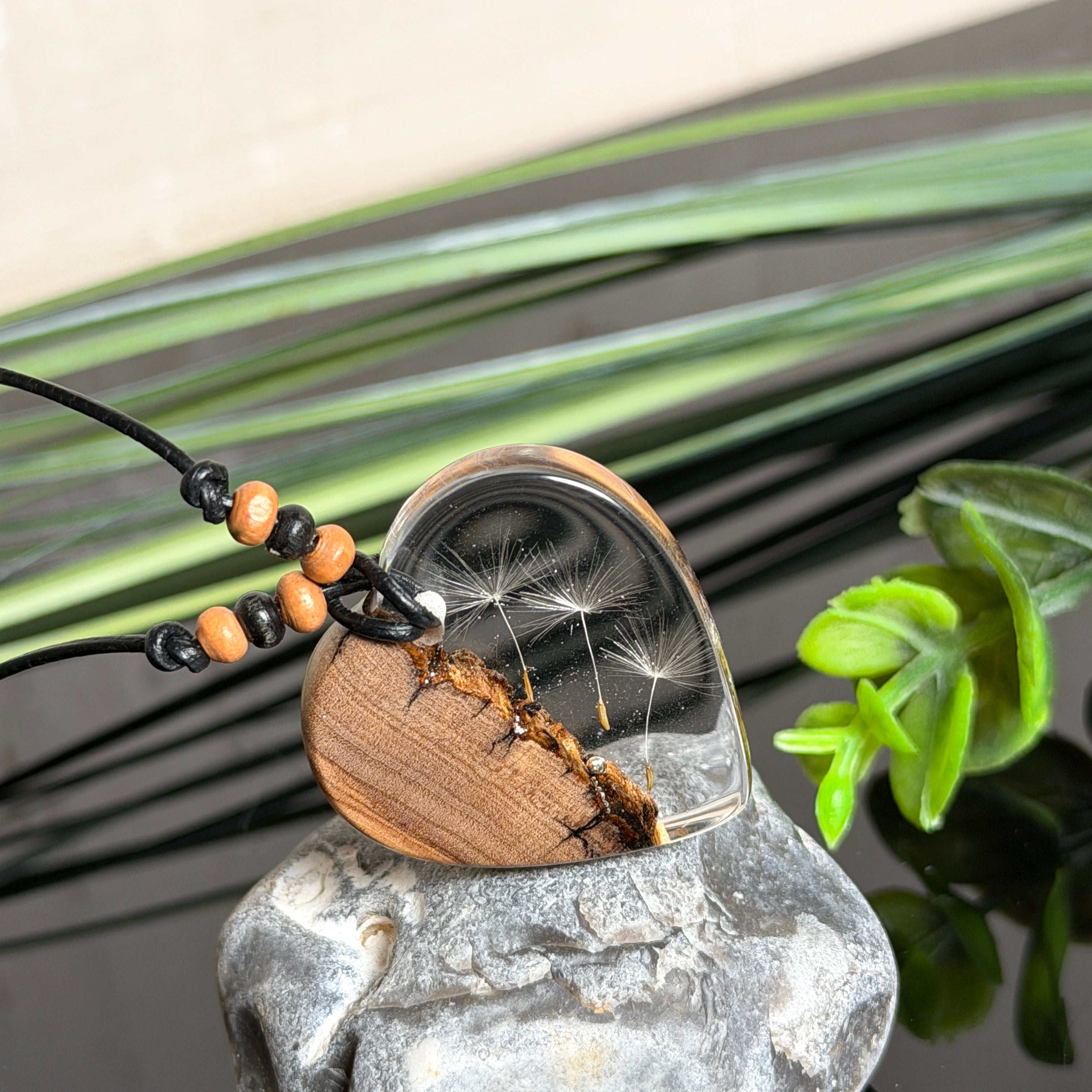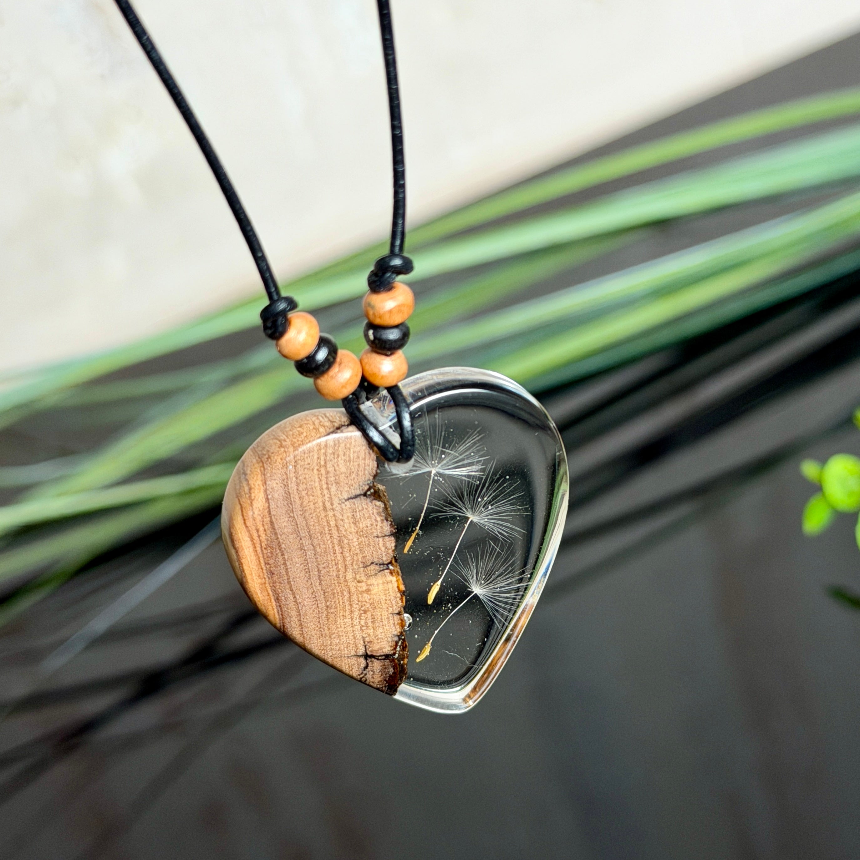 Pusteblumen Herzanhänger aus Olivenholz und Harz