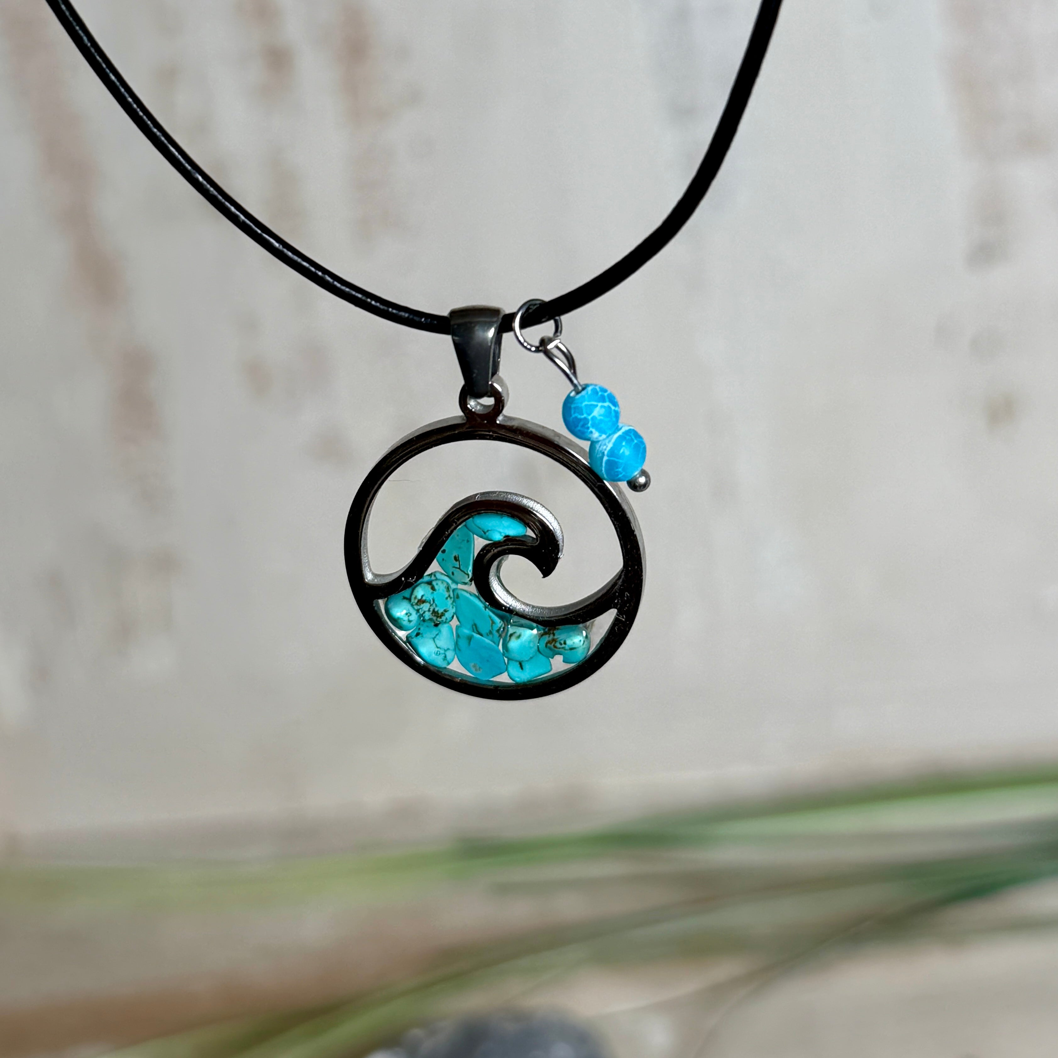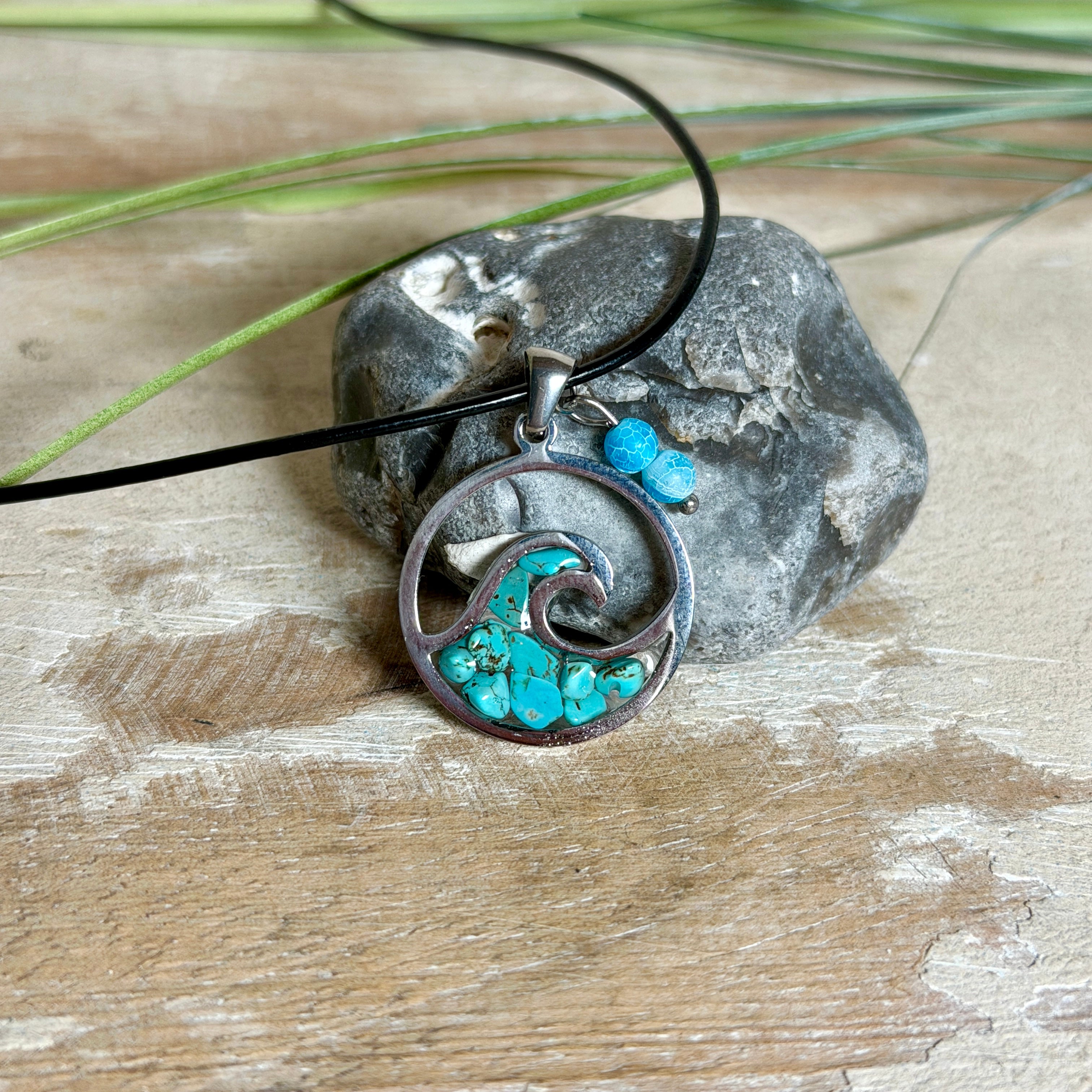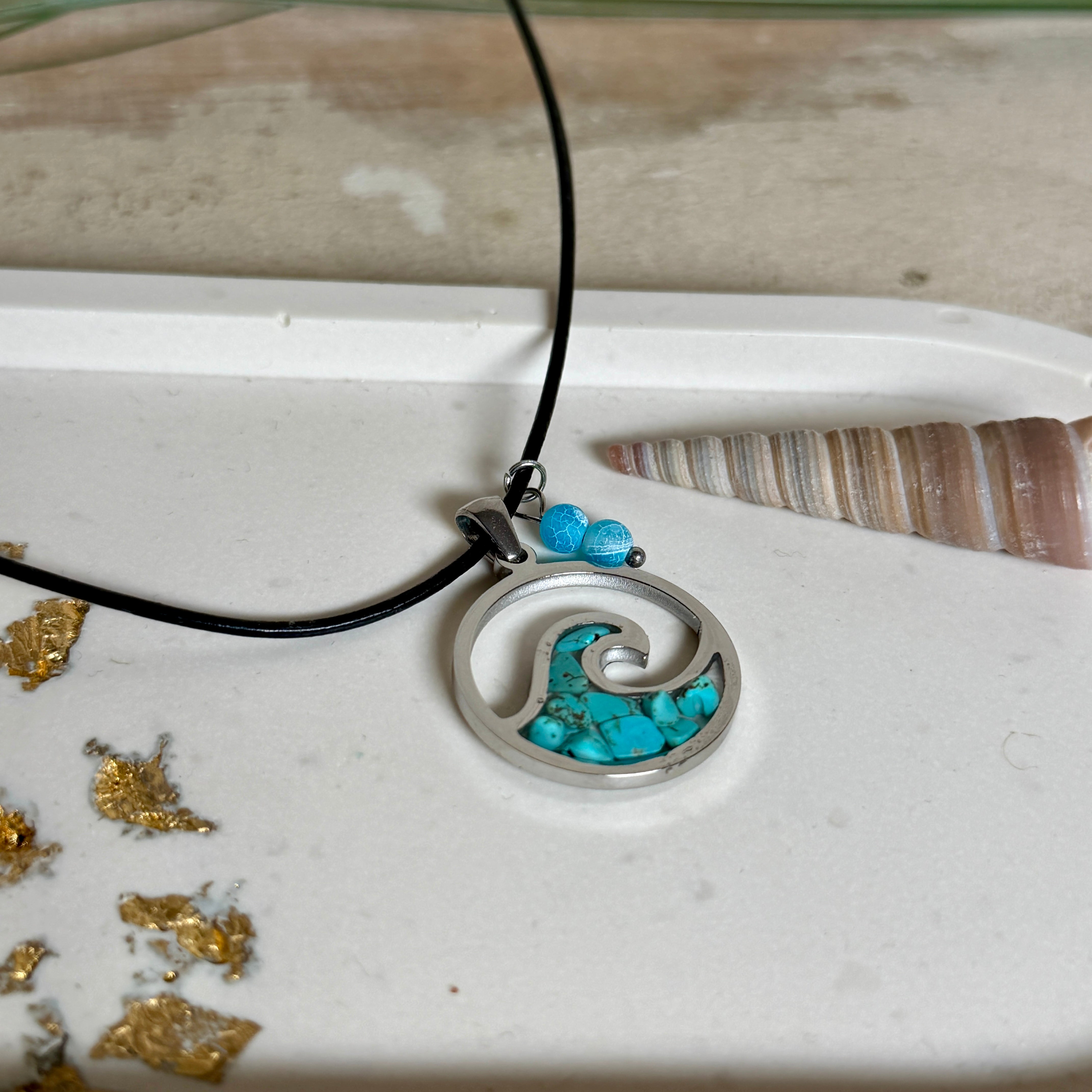 Wave Harmony – Wellenanhänger aus Edelstahl mit Türkis