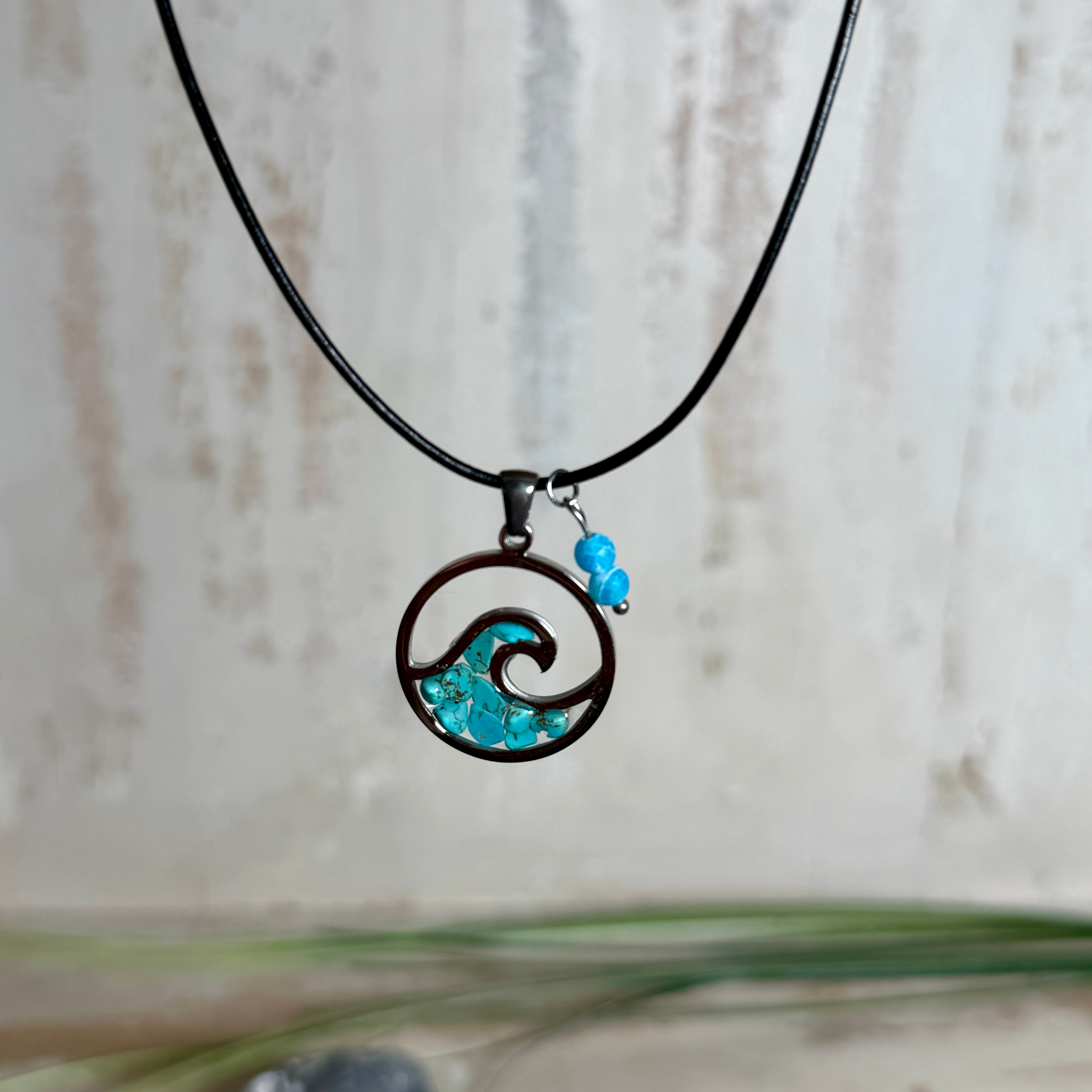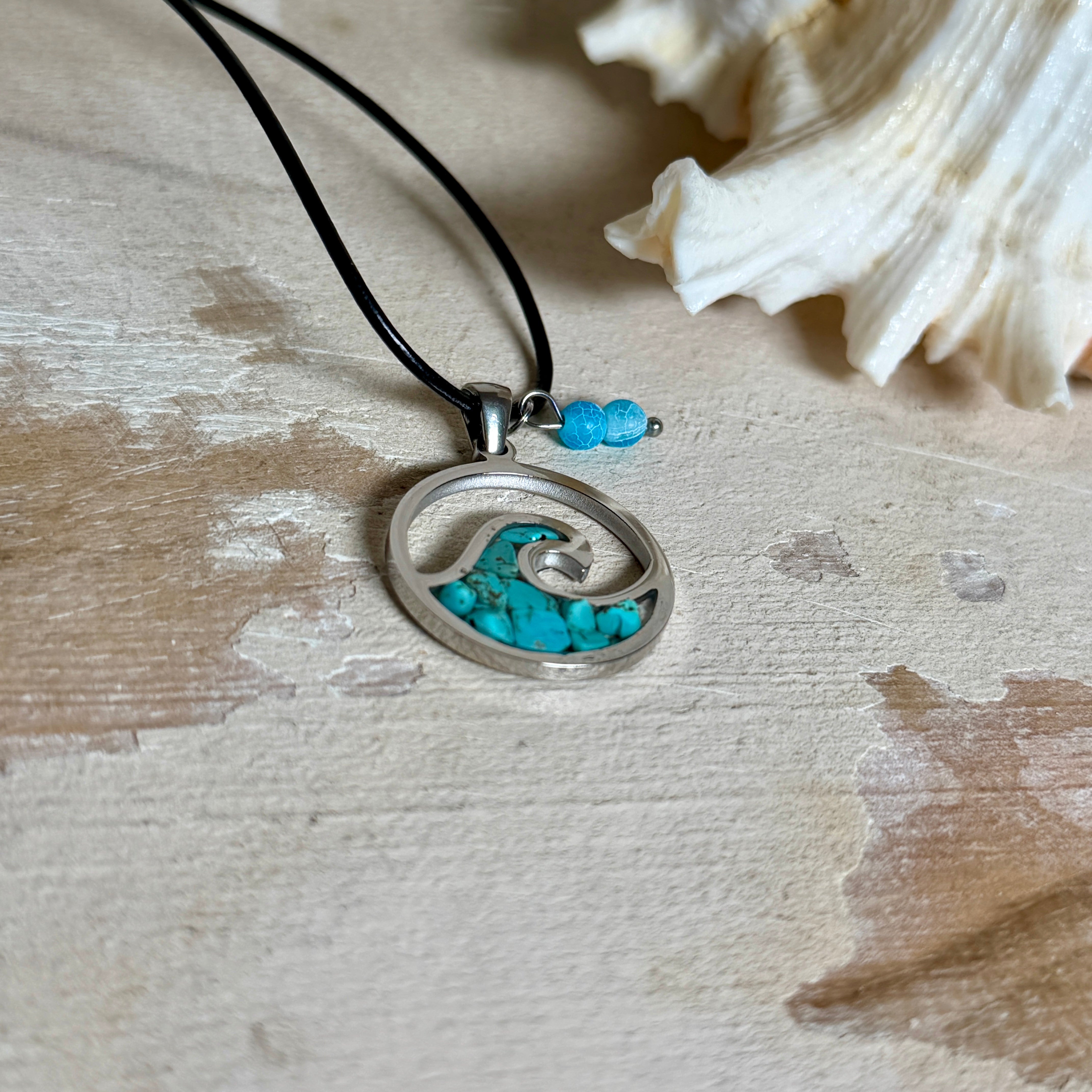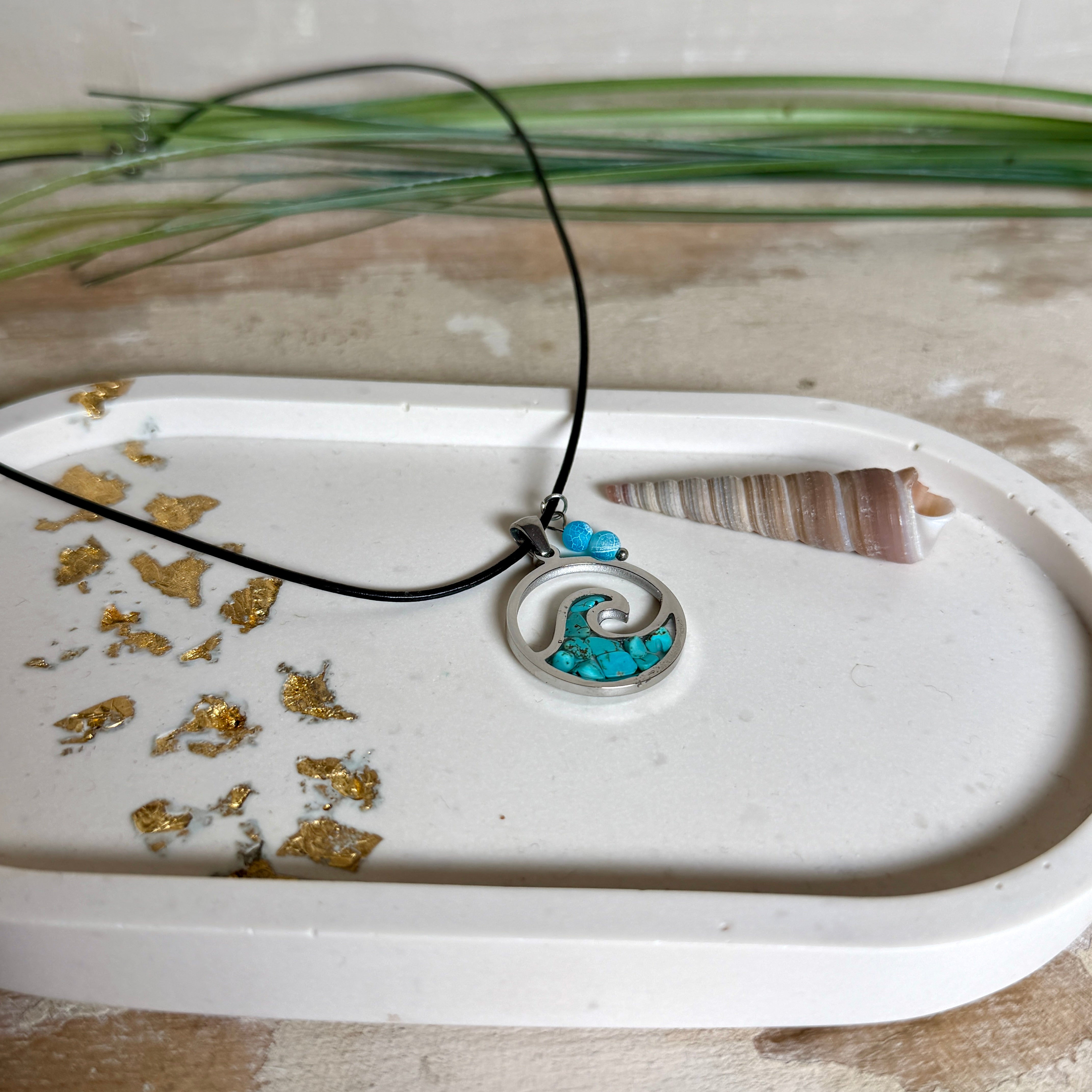 Wave Harmony – Wellenanhänger aus Edelstahl mit Türkis